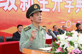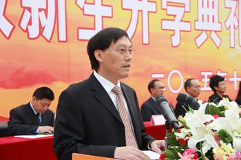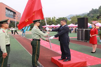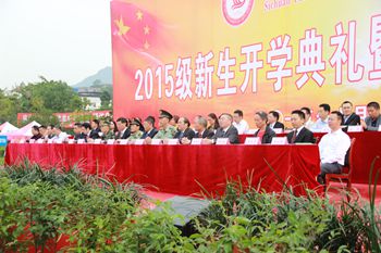 10月9日上午,学校在莲湖校区田径场隆重举行2015级新生开学典礼暨军训开训式。市委常委、达州军分区政委杨清华出席并讲话,党委书记王洪辉宣布2015级学生军训开训并为军训团授旗,校长王成端作热情洋溢的讲话。党委副书记侯忠明主持开训式。