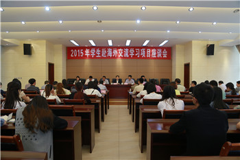 5月7日,学校召开2015年学生赴海外交流学习项目座谈会。校长孟兆怀,达州市政府外事侨务办主任张秦、副主任何洪涛,香港树德教育集团驻成都办事处项目主任刘井涛出席。会议由副校长李壮成主持。