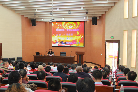 为深入开展领导班子思想政治建设暨“三严三实”学习教育专项活动重大腐败案件反思学习会,4月28日下午,学校邀请达州市检察院副县级检察员霍建国来校作法律宣讲,党委书记李万斌,党委副书记李佳国、侯忠明,副校长张志远、王洪辉、李壮成、徐晓宗及全校副处以上中层干部参加。