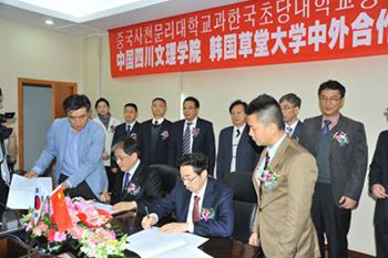 11月11日至12日,韩国草堂大学总长金丙植一行应邀来校访问交流,并与校长孟兆怀签署了合作办学备忘录,双方确定举办中外合作办学项目,建立中韩韩语培训中心。
