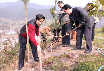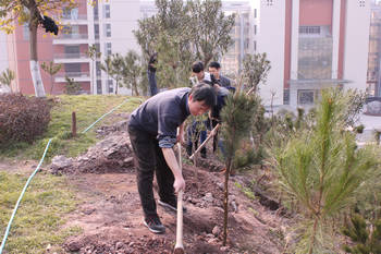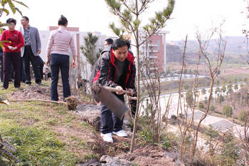 参加植树活动的教师携带工具早早来到山头,大家分工协作,有的搬树,有的浇水,有的覆土,有的协助,干得热火朝天。在基建处有关技术人员的指导下,大家科学、有序的栽植,学院领导还不时与参加植树的教师交流经验,谈笑风生,并要求有关部门要加强管理,保证存活率,使凤祥山变得更加美丽。在大家的辛勤劳动下,经过近一个小时,共栽植了100多棵松树和杉树。
