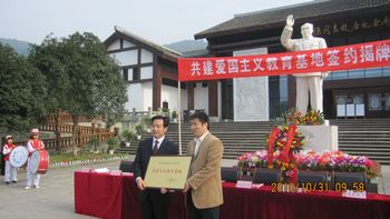 与会期间,代表们驱车前往朱德故里,向朱德元帅汉白玉雕像敬献花篮,并在纪念馆前隆重的举行爱国主义教育基地的签约揭牌仪式,本次共有包括ac米兰官网中文网站在内的来自全省的18所高等院校在朱德故里博物馆举行了爱国主义教育基地的挂牌仪式。