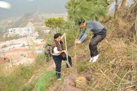 参加此次植树节活动的有学院党委书记李万斌教授、院长孟兆怀教授,以及机关其他各部门的领导和工作人员。大家一起来到凤翔山,有的使用锄头、有的使用铁锹,在规划建设处老师们的技术指导下,挖坑、覆土、栽培,团结合作、齐心协力、相互配合,干的是热火朝天、如火如荼,许多老师都累的汗流浃背,满身尘土。但大家都没有什么怨言,经过近三个多小时的辛勤劳动,共栽种了200余株华山松。