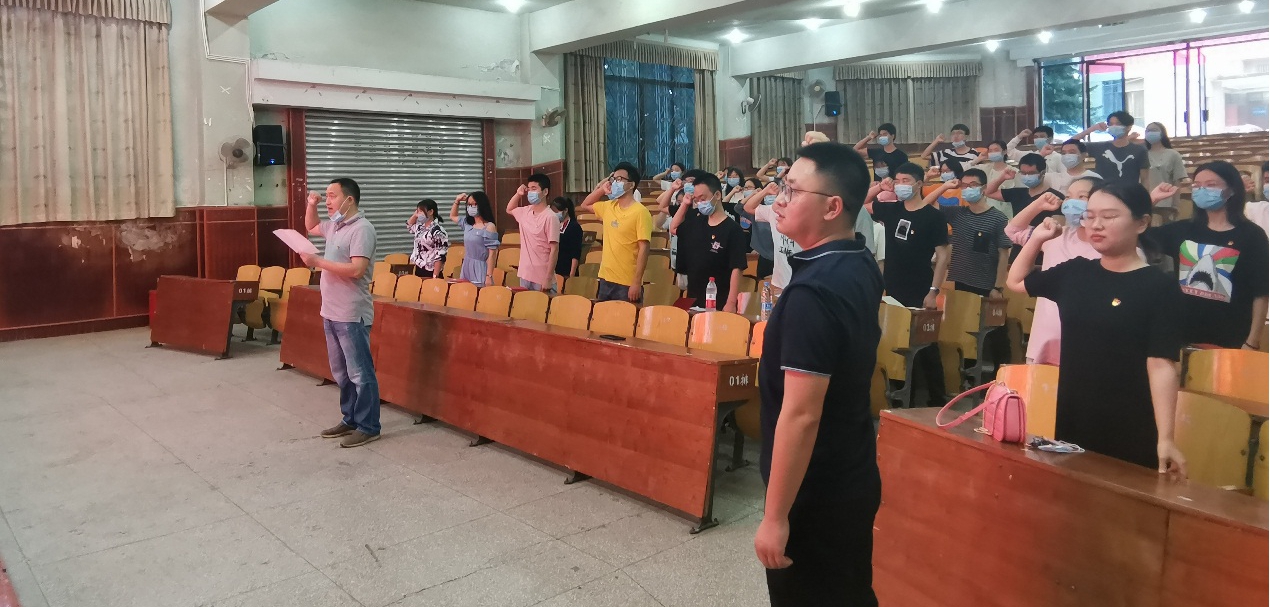 党总支书记李涛带领党员重温入党誓词,表达对党的忠诚、为共产主义事业奋斗终身的决心。他要求,全体党员同志要在思想上永远保持先进性,在行动上永远保持积极性,在品质上永远保持纯洁性,努力做一个奉献者。并希望,党员同志能够认清形势、珍惜工作岗位,先就业、再择业,并带动身边更多同学主动就业。