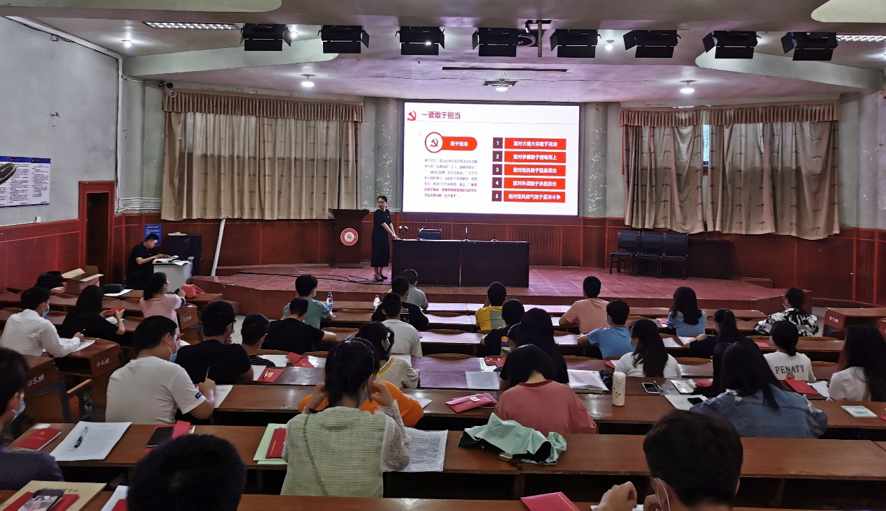 学生第一支部宣传委员谢清爽老师为毕业生党员上了题为《不忘初心,勇于担当》“最后一节党课”。谢清爽从何为“初心”、深刻理解担当精神、党员干部如何尽责担当三个角度,引导毕业生党员们在将来的工作中,要做到敢于担当、善于担当,始终坚定理想信念,不断提高理论素养,培养家国情怀。