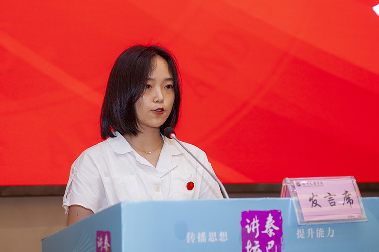 外国语学院毕业生党员尤欣怡作交流发言,分享了大学四年的成长经历、奋斗故事,充分展现了学生党员在校期间主动担当、奋发有为的党员形象。