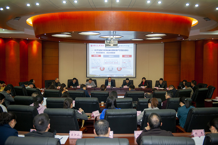 各二级单位分管国资的领导及国资管理员,二级学院实验室主任,国资处全体工作人员参加会议。