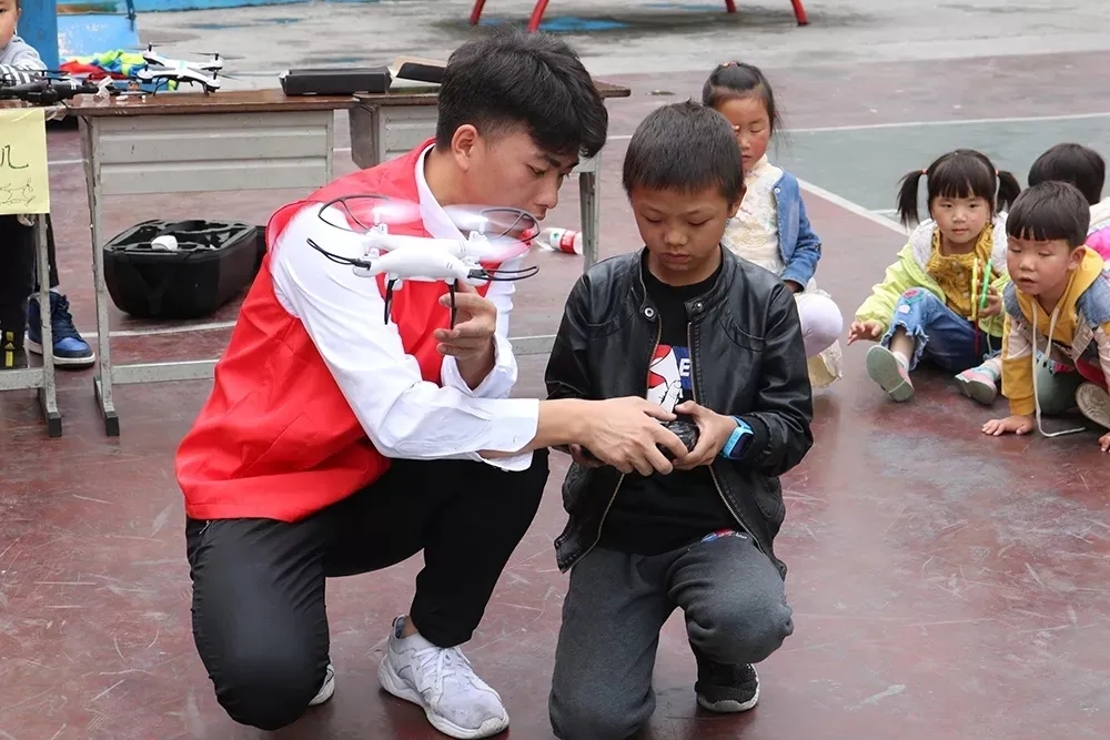 2019年7月,在学院老师的带领下,周航以学生队长身份跟随服务团队前往阿坝州小金县,开展为期五天的社会实践活动。为培养偏远山区学子对科学技术的兴趣与爱好,团队成员在红军小学操场开展了一场别开生面的科技展示,进行了智能机器人、无人机、VR体验的展示及讲解、3D打印机知识的普及。此外,他们还开展了义务维修、安全用电宣讲等特色活动,当地百姓热情而又朴实的话语、孩子们渴望知识的眼神,深深打动了周航。在小金县达维镇,这群离天空最近的孩子,正努力向上地成长。