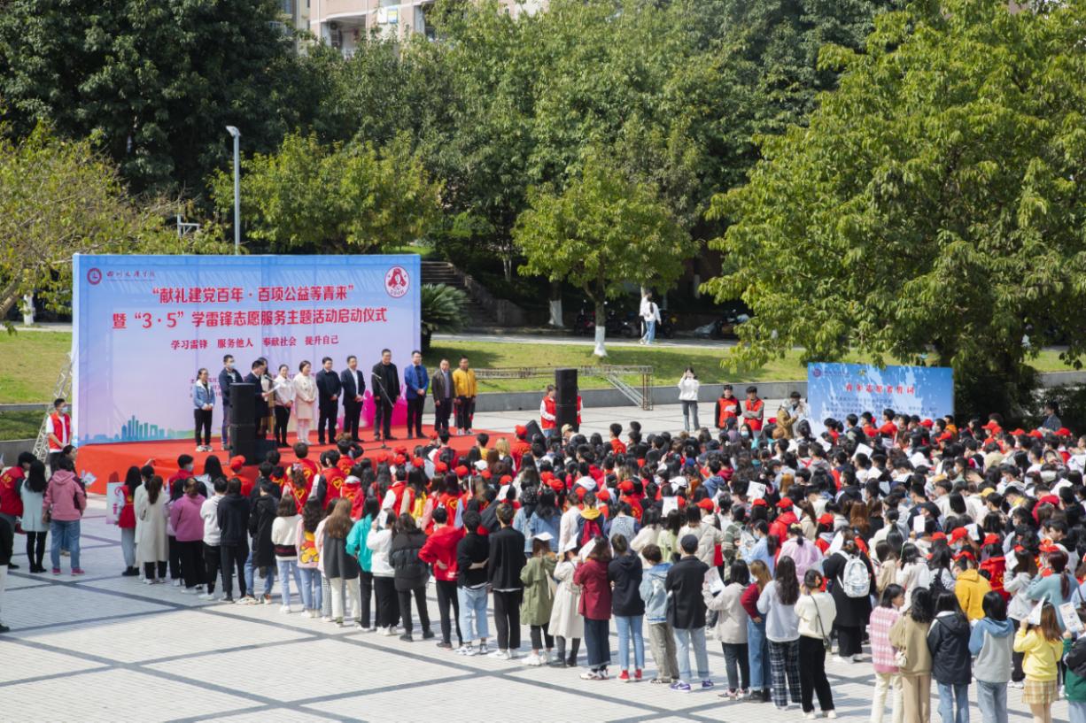 3月12日,ac米兰2021年“献礼建党百年·百项公益等青来”暨“3·5”学雷锋志愿服务主题活动启动仪式在莲湖校区稻香广场举行。党委副书记侯忠明、副校长李壮成出席启动仪式并讲话,校团委书记成华军主持仪式。全校各级团组织书记及负责人、校青年志愿者协会和各二级学院志愿者服务协会分会负责人、青年志愿者代表参加活动。