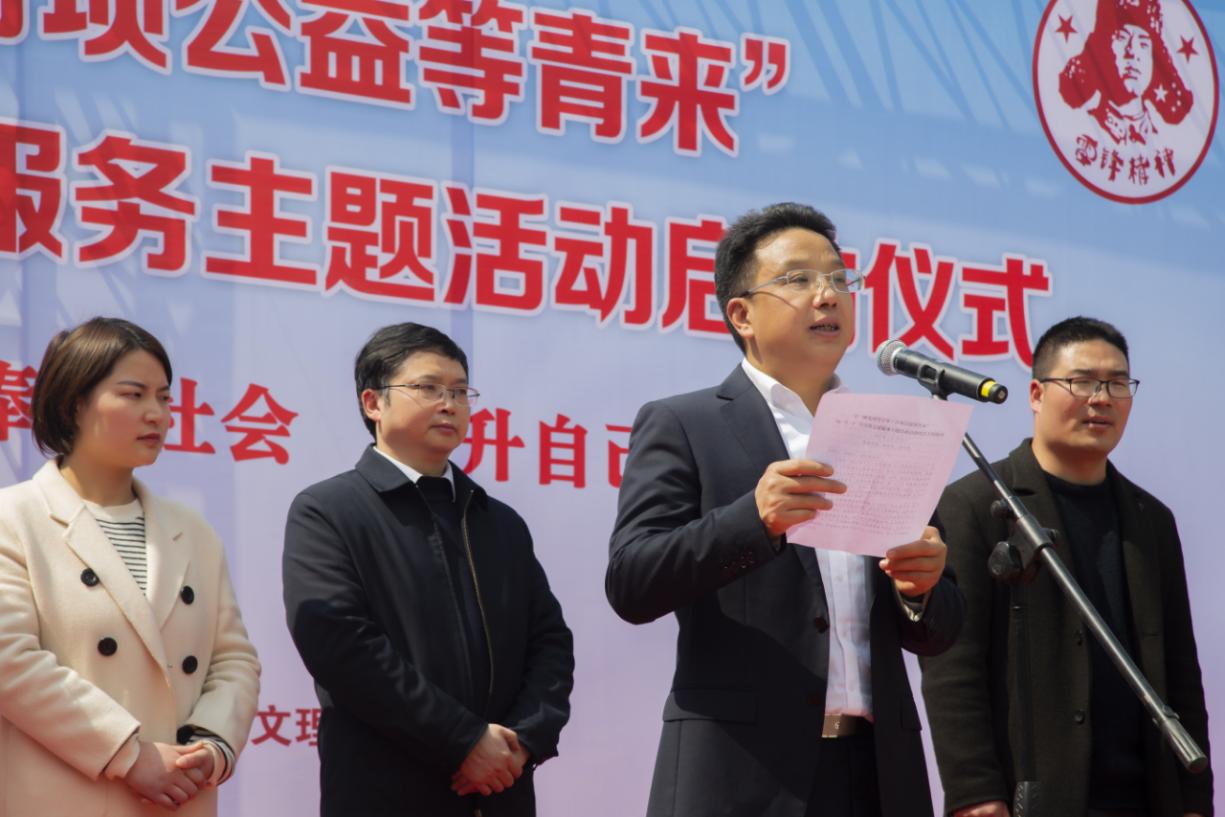 李壮成在致辞中表示,近年来,全校志愿服务组织和志愿者,以践行社会主义核心价值观为主线,以“青春志愿”为主题,开展了“爱在家乡”“爱在社区”“爱在文理”“爱在身边”等系列品牌活动,在助力疫情防控、推进文明创建、强化社会治理等领域作出了积极贡献。进入新发展阶段,希望文理青年以学雷锋月为契机,弘扬伟大抗疫精神,积极参加爱国卫生运动,以实际行动践行“学习雷锋、服务他人、奉献社会、提升自己”的理念,自觉做时代新风的传播者、美好环境的捍卫者、文明社会的建设者,以饱满的热情、昂扬的斗志、切实的行动,展现新时代文理青年新风采。