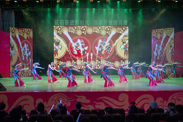 40年风雨历程,文理校园遍洒明媚春光。财经管理学院的同学带来的原创歌曲《盛放的花》将少数民族歌曲与民谣相结合,低沉的鼓声与高亢的歌声相互衬托,为观众们描绘了远行的人在路上的孤独与坚强,似盛放的花朵,如明媚的阳光。教师教育学院的舞蹈《绽放》演绎了惟妙惟肖、美轮美奂的千手观音,营造出层出不穷、千变万化震撼的视觉冲击力,将观众们带入神秘与悠远的远古呼唤。武舞乐《鼓武飞扬》将震撼听觉的鼓声和震撼视觉中国武术相结合,展示了中国古典文化令人神往的地方。晚会的最后在令人激动与奋进的舞蹈《不忘初心》中圆满落幕。