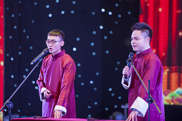 文理学子多才俊,风流酝藉喜迎新。在热烈欢快的音乐中,音乐与演艺学院同学用热烈的舞蹈《起舞迎新》拉开了晚会的帷幕。舞蹈《心有翎兮》将国粹京剧与舞蹈完美结合,利用音乐与灯光相结合的快慢效果,为我们展示了时而欢快灵动、时而沉稳舒缓的京剧世界。由四个学院共同合作的朗诵《春潮拍岸千帆进》用激昂的歌声辅以娓娓道来的故事,将中国改革开放四十周年来谱写的壮丽史诗生动的展现在我们眼前,其传达出的时代的召唤使在场的观众心潮澎湃。流行歌舞《飘向北方》在闪烁的光影中,唱出了每一个成功的人身后那拼搏的心酸苦楚与向着前方前行的坚定的信念。