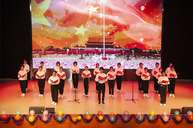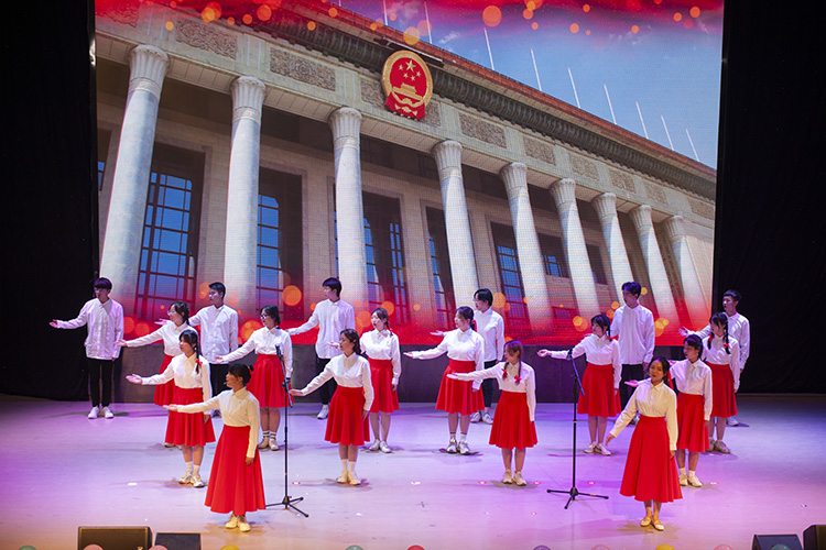 晚会在大学生通讯社网运部及制造街舞社带来的热情四溢的舞蹈串烧中拉开帷幕。合唱《少年中国说》《只要平凡》中,演员们用真诚而饱含情感的歌声唱响了对英雄的赞美,唱响了青年学生传承红色基因的爱党情怀。舞蹈《云与海》《灯火里的中国》中,演员们的舞蹈动作精准而优美,表达了对祖国的热爱和赞美。朗诵《我的“自白书”》《党旗飘飘》《向胜利进军》《我爱你中国》中,演员们情感真挚饱满,语言铿锵有力,表达了青年学子对党和祖国的炽热之情。《战地惊雷》以小品的形式让观众看到了革命先烈为新中国的成立所做出的牺牲,对青年学生来说是一堂生动的爱国教育课。党史知识问答、听歌识曲等互动环节,调动了观众学习党史的热情,将整个晚会推向高潮。最后,晚会在全体演职人员合唱的《在灿烂阳光下》圆满落幕。