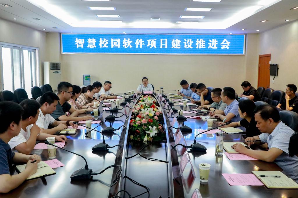 6月7日上午,党委副书记侯忠明在莲湖校区主持召开智慧校园软件项目建设推进会,校办公室、教务处、学生处、人事处、科技处、审计处、计划财务处、国有资产管理处、公共资源交易服务中心、信息化建设与服务中心等部门主要负责人及各部门具体负责信息化建设的工作人员,以及本项目的承建单位负责人和驻场技术人员参加了本次会议。