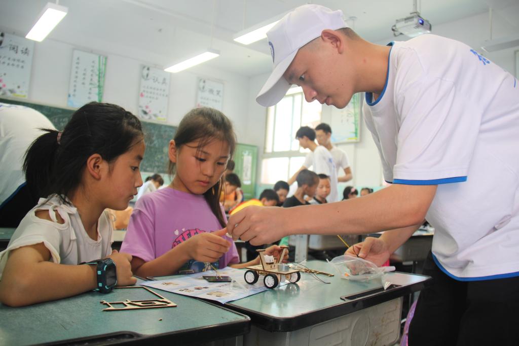实践团一支小分队在民族广场开展了义务维修,为群众维修电风扇、电热水壶、插座、电磁炉和电饭煲等家电100余件。实践团另一支小分队在恒合民族中心小学和近200名小学生一起开展精彩的“科技小课堂”和“红色小课堂”,向他们分享了智能机器人、无人机的知识以及达州的红色文化。小朋友们近距离操控了智能机器人,组装制作摇头风扇和“天问一号”太阳能电动小车。组装完成后很多小朋友都很高兴地说:“看到亲自操作完成组装后的小风扇转起来、电动小车跑起来,我们都太开心啦!”。