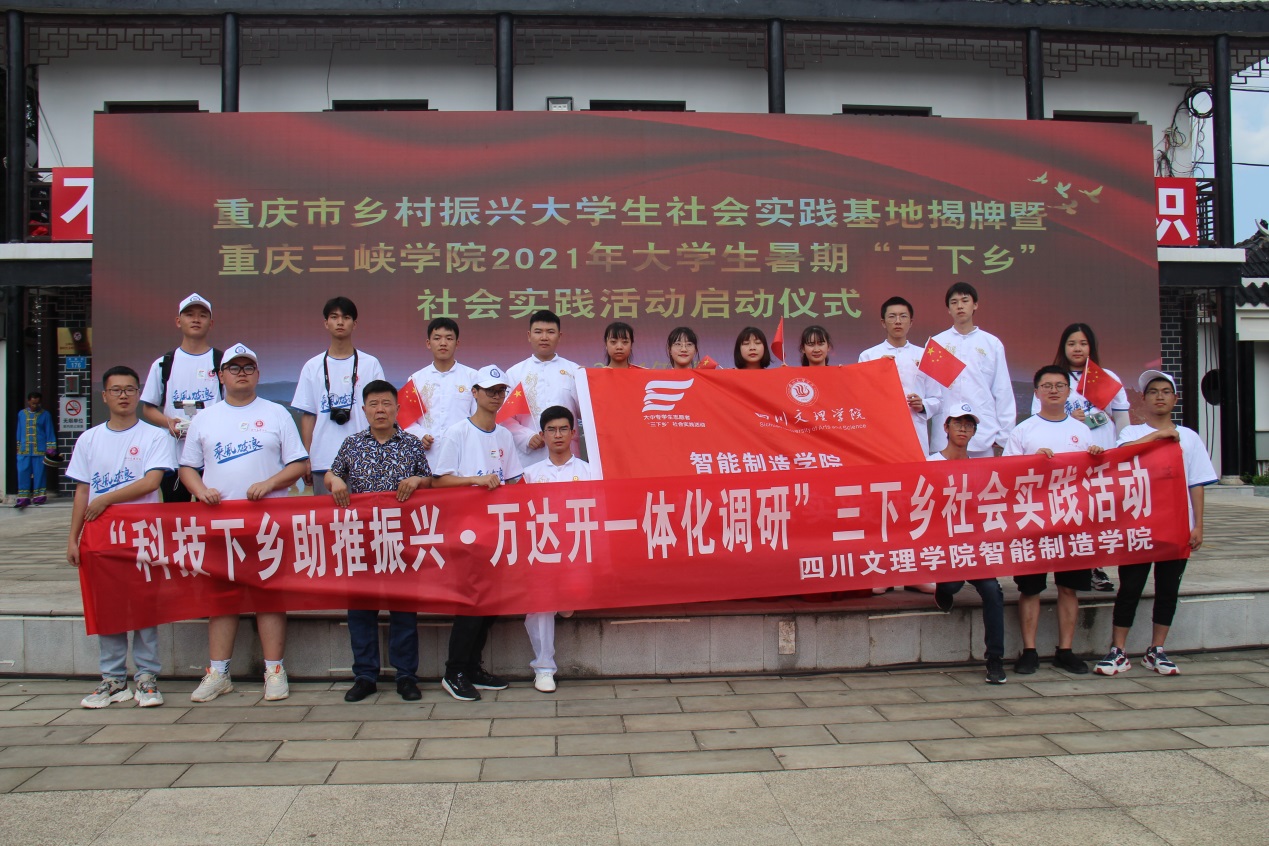 依托学校牵头成立的万达开川渝统筹发展示范区高校联盟,7月12日起,智能制造学院18名师生联合重庆三峡学院,赴“万达开”三地开展“锋行直通车”乡村振兴实践活动。实践团充分结合智能制造学院专业特色,通过科技展示、科技小课堂、家电义务维修、 党史宣讲、访问老党员、垃圾分类知识宣讲等形式开展暑期“三下乡”社会实践活动。