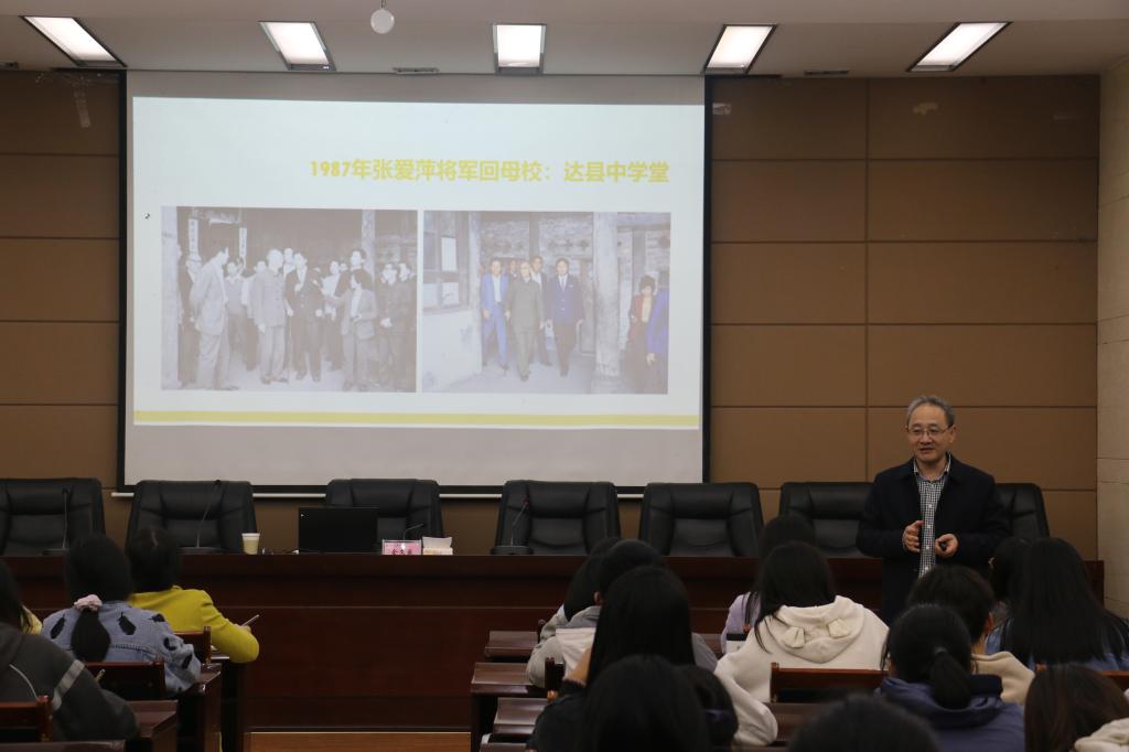余文盛教授主要从办学缘起、“五老先生”、扩校升本、国际交流等8个方面讲述学校的前世今生。他对学校历史如数家珍,讲故事和配图片的授课方式生动鲜活,把宣讲员带入到学校发展各阶段的情境中。同学们感受到张爱萍将军对学校发展的关心,张爱萍将军从ac米兰南坝校区踏上革命征途,1987年回到母校视察并挥毫为学校即将修建的图书大楼题写馆名;也知道了“德艺双馨”的章继肃、“四川省劳动模范”王膏若、捐赠毕生藏书给学校的尹祖健等老先生,并被他们的渊博学识、敬业精神和朴素作风深深打动。余文盛教授说,在学校从师范专科到综合性本科院校的发展历程中,凝聚着历代师生奋发有为的智慧和攻坚克难的奉献精神。