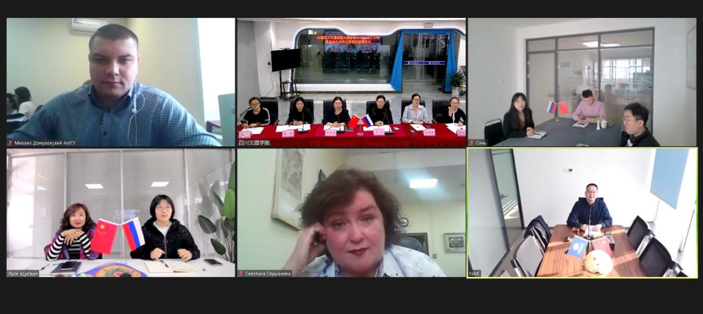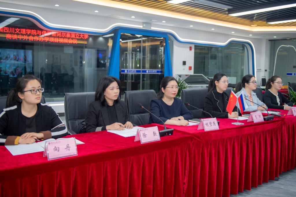3月28日,学校与俄罗斯阿尔泰国立大学开展中外合作办学项目视频交流会议。俄罗斯阿尔泰国立大学副校长多穆霍夫斯基·米哈伊尔·阿列克谢耶维奇,国际教育项目部长格鲁沙尼娜·斯维特拉娜·维克托罗芙娜,学校副校长程碧英,国际交流与合作处全体人员,外国语学院徐歉老师参加会议。