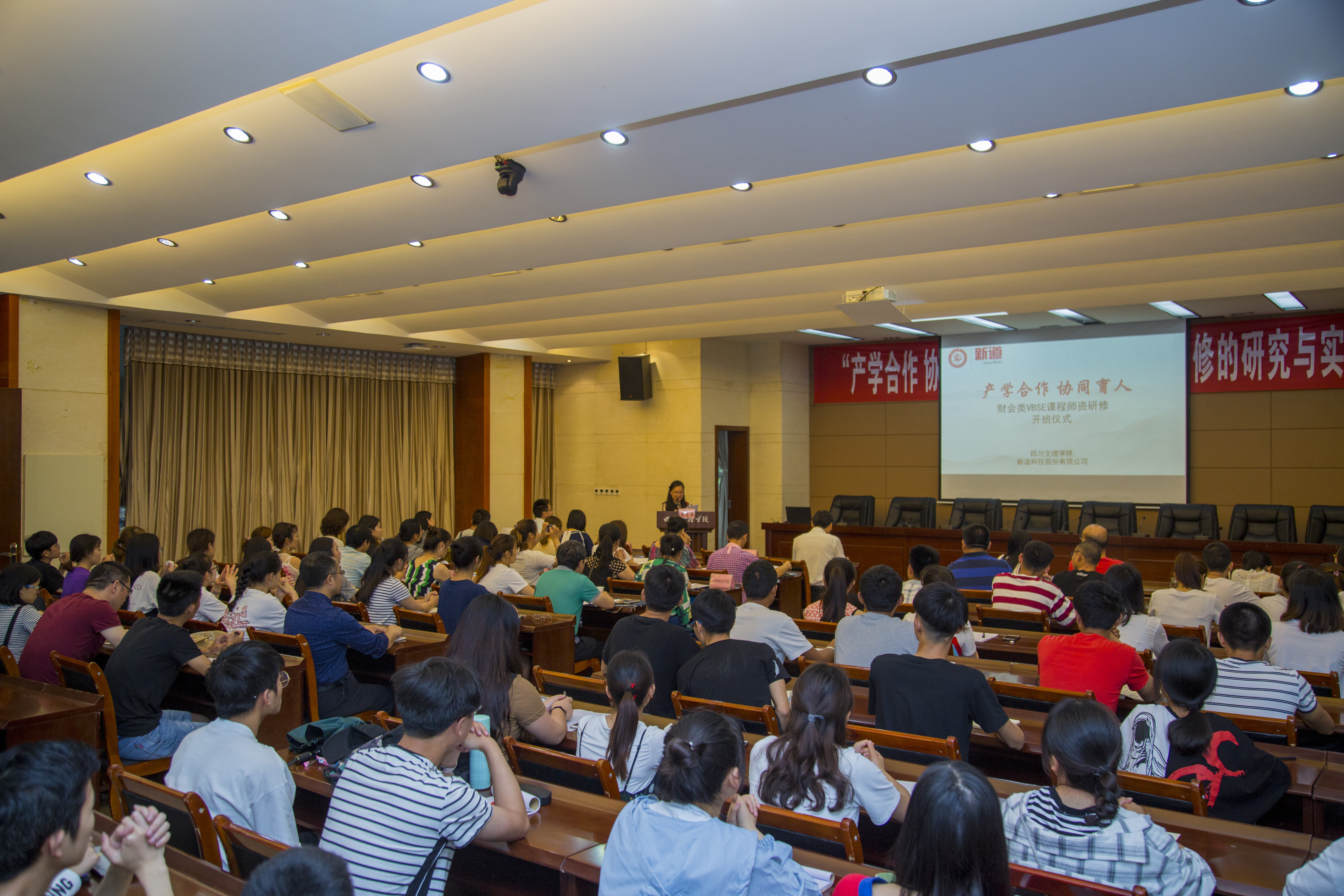 5月18日,新道“财会类VBSE课程师资研修”培训班开班仪式在ac米兰莲湖校区举行。学校党委书记王成端、新道股份科技有限公司四川分公司总经理侯爱华、新道科技股份有限公司西南区实施总监傅金能出席开班仪式,开班仪式由新道股份科技有限公司四川省区销售与运营总监成华敏主持。