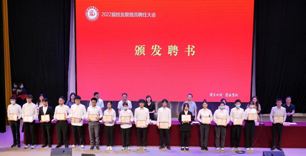 会上,校友工作办公室主任杨成林宣读了《ac米兰官网中文网站关于聘任2022届校友联络员的通知》,117名毕业生经过推荐遴选,获聘为2022届校友联络员。接着与会领导为各二级学院校友联络员颁发了聘书。