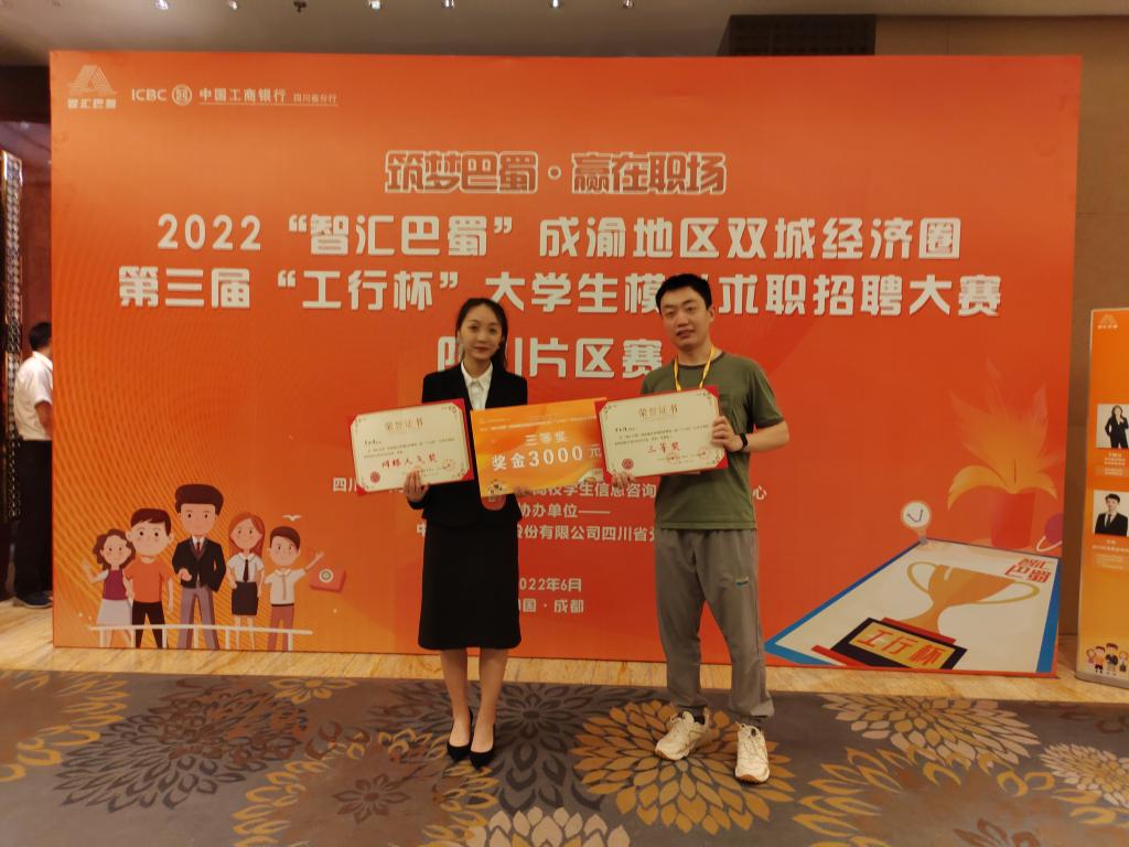 近日,“智汇巴蜀”成渝地区双城经济圈第三届大学生模拟求职招聘大赛圆满落幕。化学化工学院学生辛雨瑶获得全省20强、三等奖、最佳人气奖。