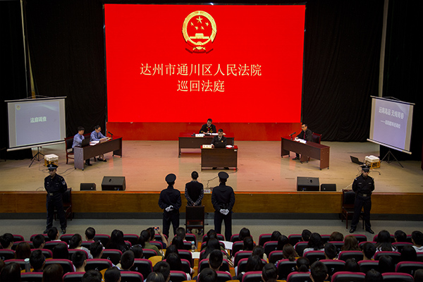 为使大学生对毒品的危害有更深入、直观的认识,帮助学大生认识毒品、远离毒品。4月26日,“远离毒品,无悔青春——巡回庭审进高校”活动在ac米兰莲湖校区举行。党委副书记侯忠明,通川区人民检察院党组书记、检察长熊瑛等法检系统领导,达州市教育系统领导,部分人大代表、政协委员以及政法学院党政负责人出席活动。