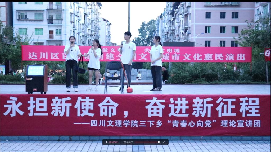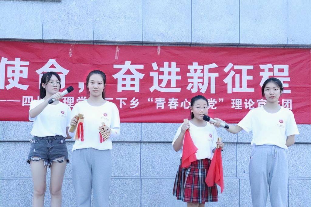 新蓝图鼓舞人心,新征程催人奋进。为学习贯彻省第十二次党代会精神,ac米兰“青春心向党”理论宣讲团奔赴达川区百节镇所辖乡村和社区,以昂扬向上的精神状态和饱满的激情热情,用百姓喜闻乐见的形式,宣传习近平新时代中国特色社会主义思想,打通理论学习“最后一公里”的关键一环,推动习近平新时代中国特色社会主义思想“飞入寻常百姓家”,以实际行动迎接党的二十大胜利召开。