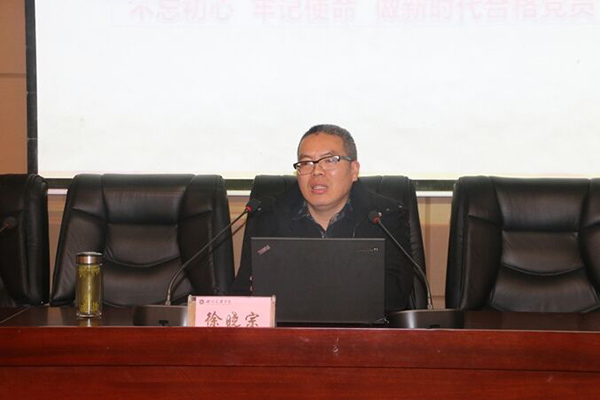 徐晓宗以严谨的思维、精辟的语言使参会党员更加清晰地领会到习近平新时代中国特色社会主义思想与马克思列宁主义、毛泽东思想、邓小平理论是一脉相承,他要求大家在学习和领会党的十九大精神时,要在“五个聚焦”上下功夫:聚焦习近平新时代中国特色社会主义思想是党必须长期坚持的指导思想,聚焦5年来党和国家事业取得历史性成就和发生历史性变革,聚焦中国特色社会主义进入新时代、我国社会主要矛盾已经转化为人民日益增长的美好生活需要和不平衡不充分的发展之间的矛盾等重大论断的深远影响,聚焦贯彻落实党的十九大的重大决策部署,聚焦习近平总书记是全党拥护、人民爱戴、当之无愧的党的领袖。希望大家作为基层党政机关的党员要不忘为民谋幸福,坚持为民服务,铭记理想信念,养成高尚的道德情操,严守道德纪律,淬炼自己的钢铁意志,踏实做好人民的勤务员。