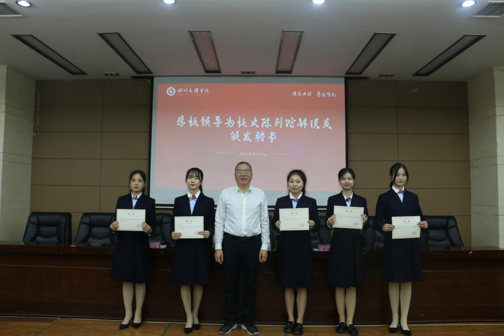 徐晓宗还为一年来一直坚持训练,不断提升校史解说素质,现已能够在校史陈列馆上岗的5位同学颁发解说员聘书。档案馆全体老师和校史宣讲员80余人参加了此次培训会。