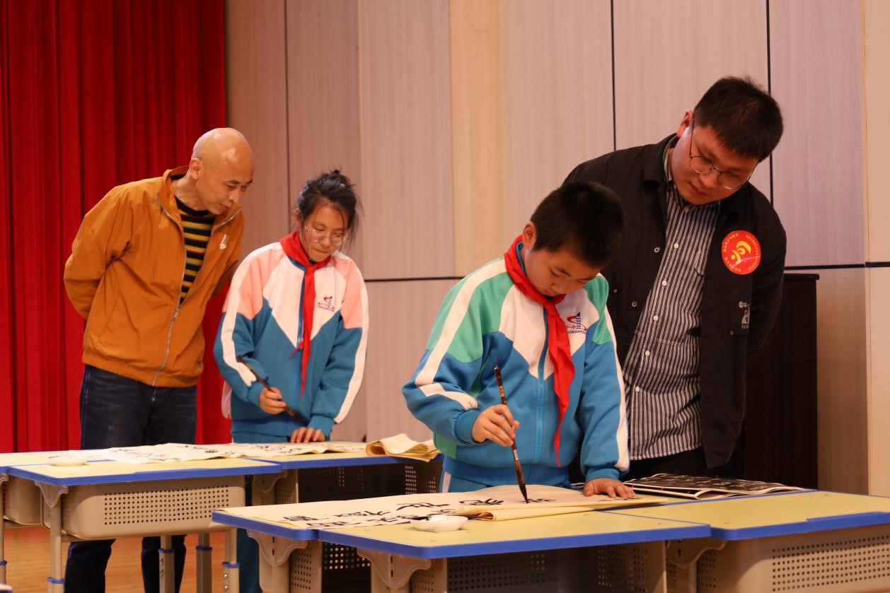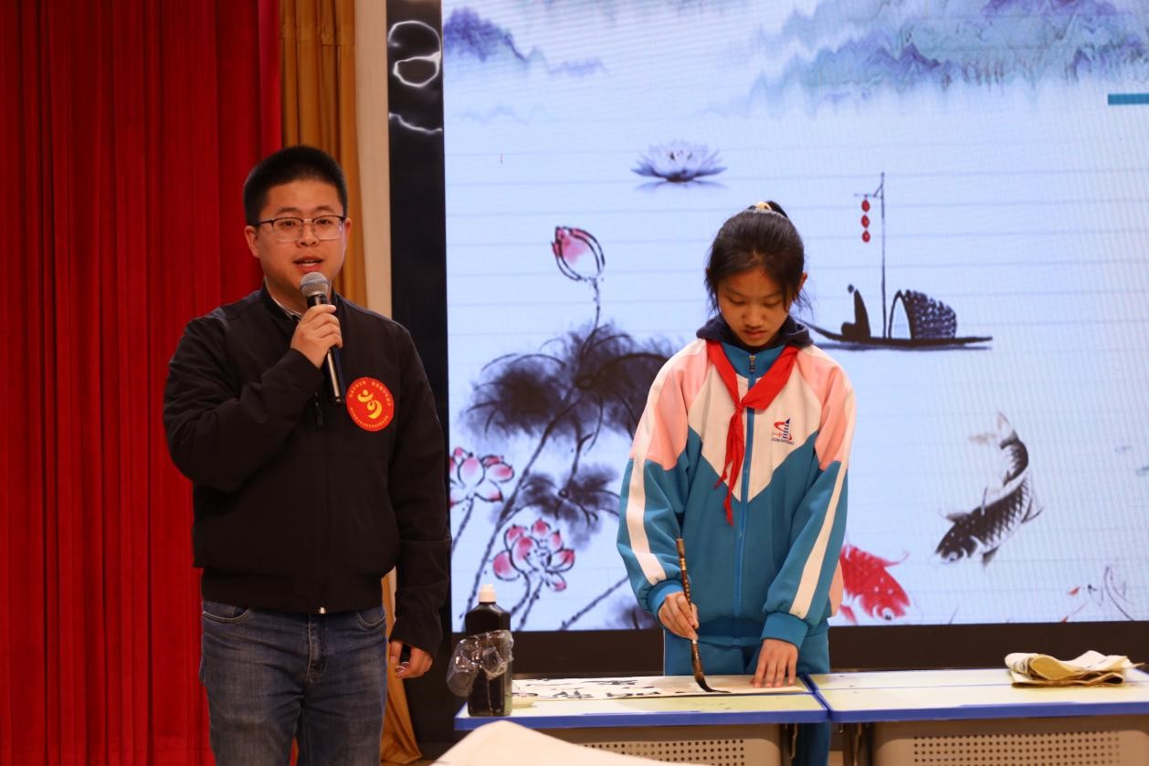 邓洪玉和郭岩分别给200余名五年级学生普及了基本的书法知识,从书法如何成为世界非物质文化遗产,教育部出台加强学生书法的文件,书法的分类、特点及流传程度,初学者应怎样入手等方面娓娓道来,有故事、有口诀、有逻辑、有讲究。