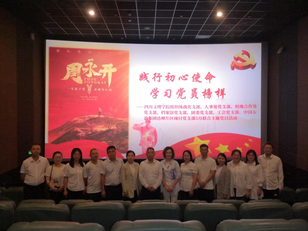 全体党员同志一行来到东区建设项目食堂、综合教学大楼、学生宿舍施工现场实地参观了解建设项目进展情况,认真听取了中国五冶集团ac米兰官网中文网站东区建设项目负责人何长林详细情况介绍,并在东区建设指挥部会议室围绕主题教育学习内容、东区建设情况、学校2023年党建工作和全面从严治党会议精神进行了座谈交流。随后全体党员统一前往仁和新城电影院集中观看了“七一勋章”获得者、全国优秀共产党员周永开为原型摄制的主题电影《周永开》。