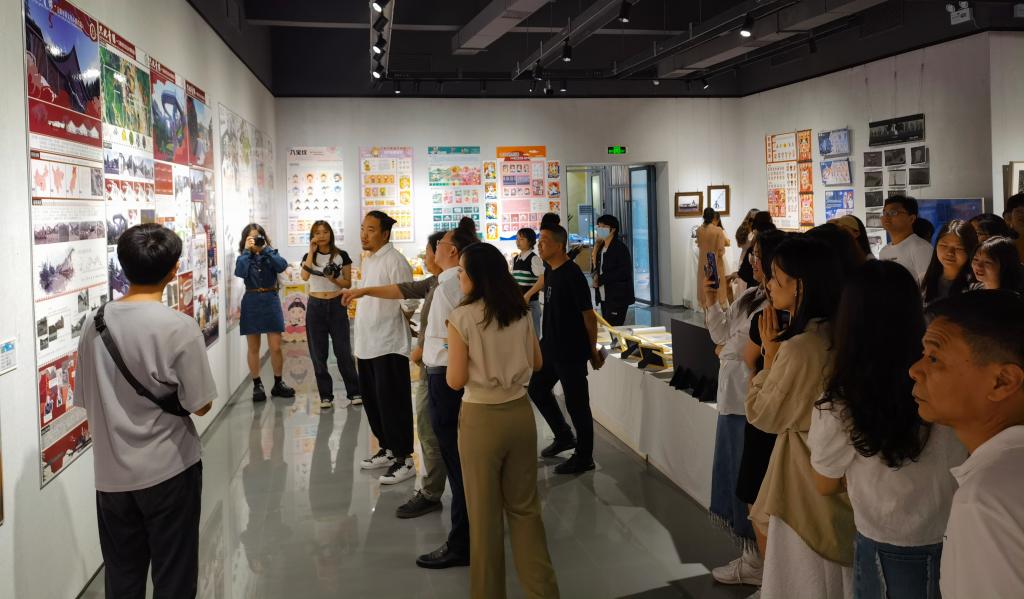 美术学院院长刘承川介绍展览情况,指导教师代表黄莎老师、2023届毕业学生代表刘雪茹分别发言。