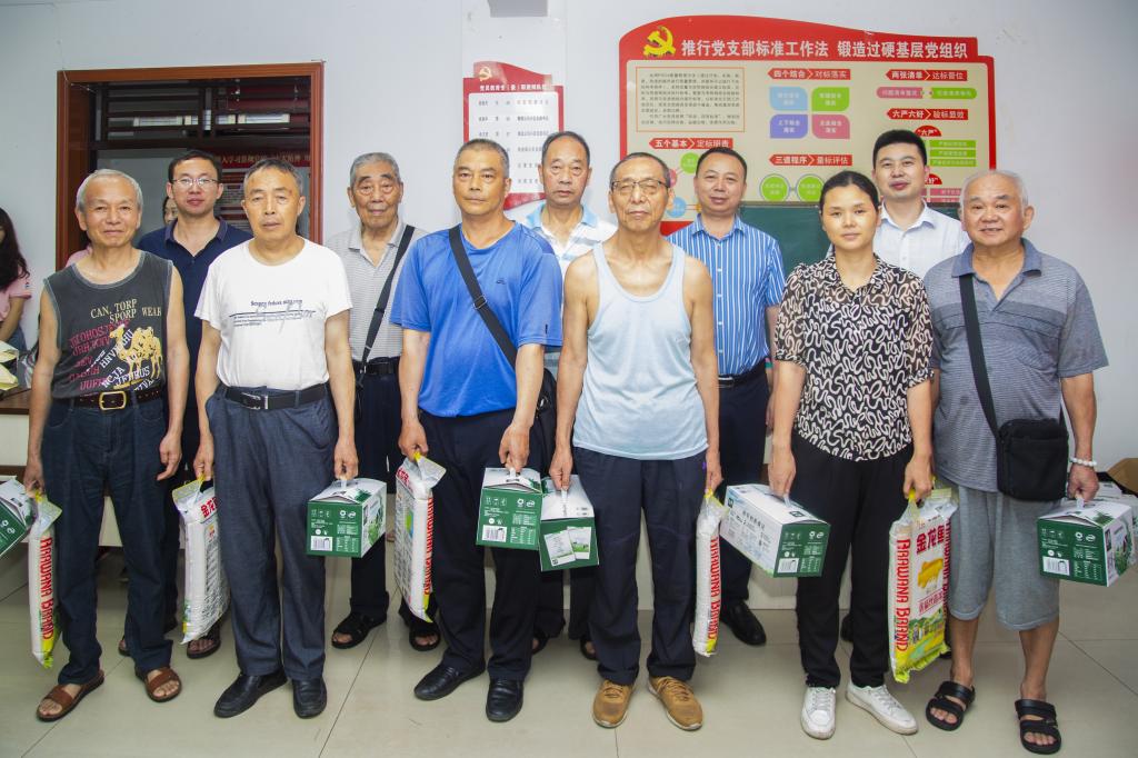活动上,志愿者们向老党员送上牛奶、大米等慰问物资。随后,学生志愿团队为老人们表演红色歌舞,讲述红色故事,组织老人和青少年一起参加体育活动,现场热闹非凡,掌声笑声不断。