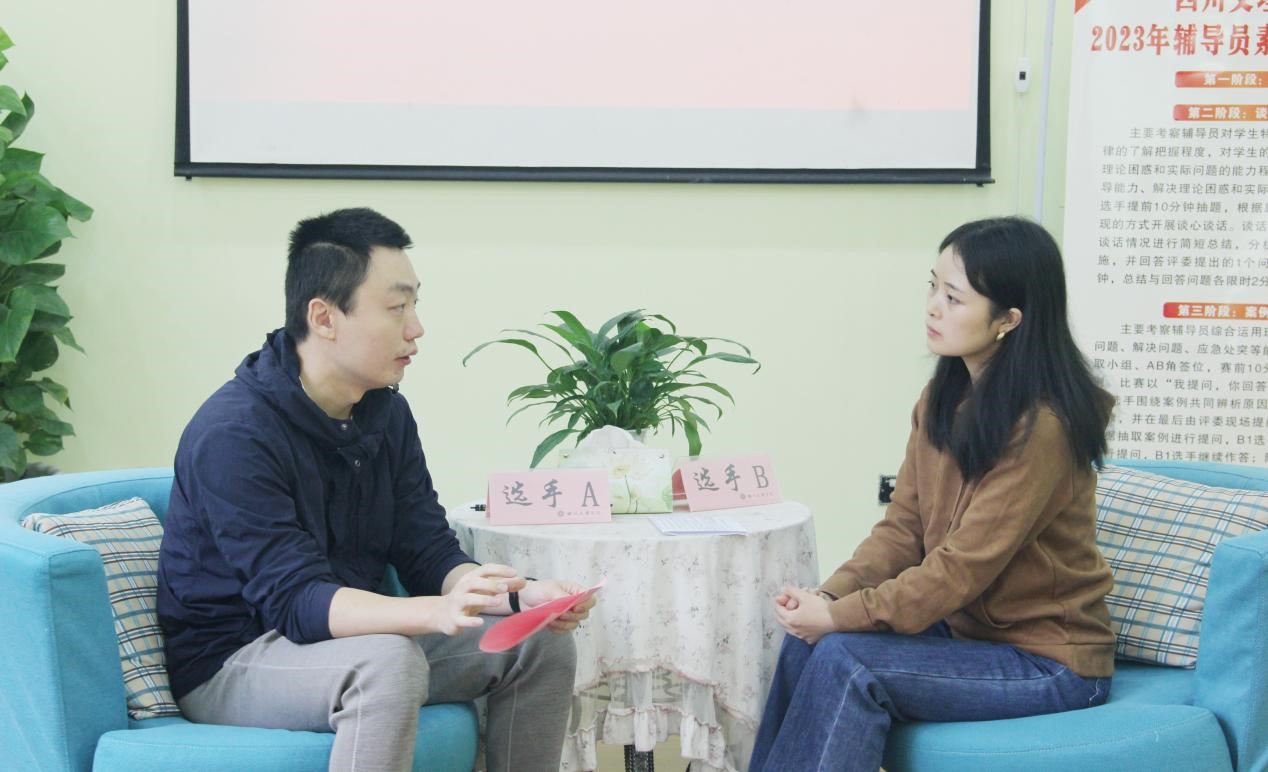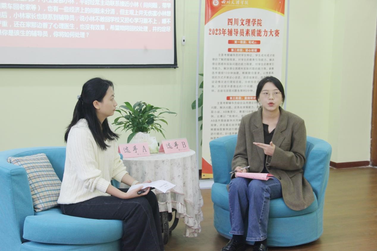 谈心谈话环节充分地体现了参赛辅导员高度的人文关怀,也展现出良好的政策解读运用、信息抓取分析以及教育引导能力。