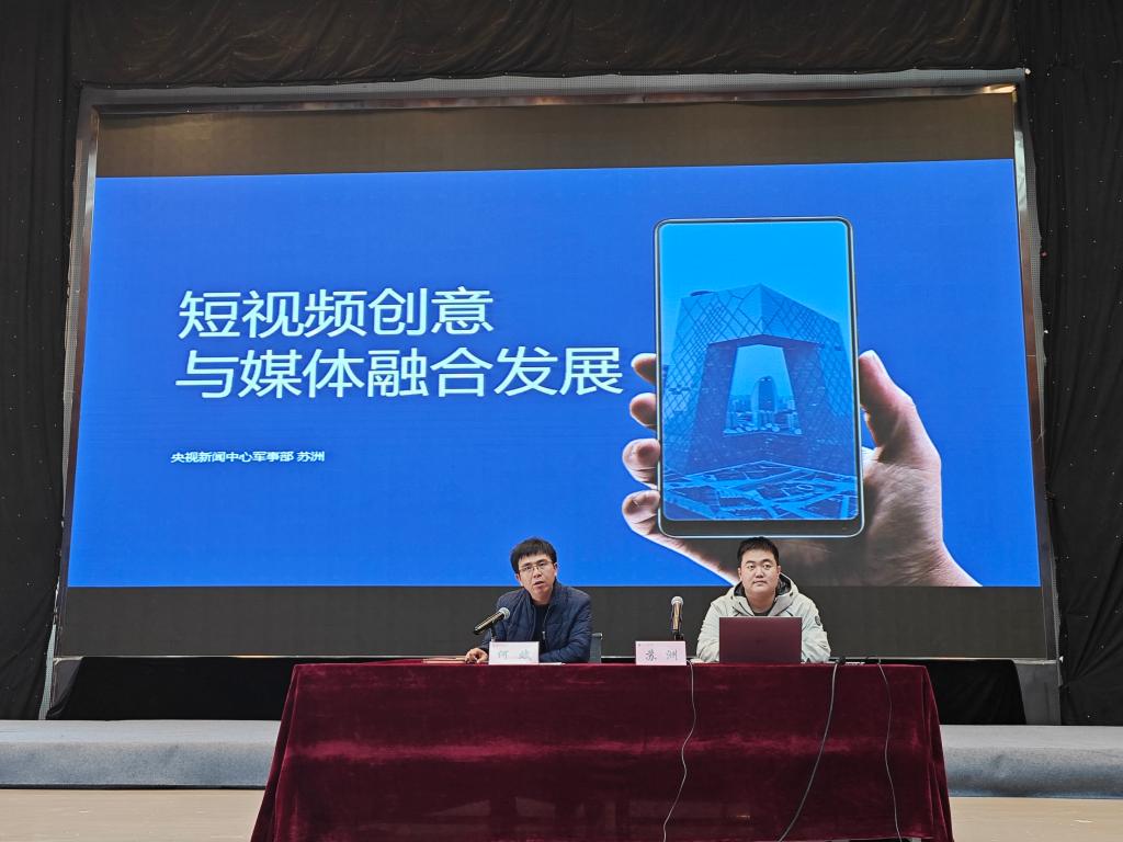 苏洲以短视频创意与媒体融合发展为题,就融媒体新闻报道“从作品向产品转变”;大数据、人工智能将改变内容生产和格局;提高共情能力,实现“隔屏共情”,这三点展开本次讲座。他结合工作经历,如在新冠疫情暴发前期赴武汉一线报道新闻,采访天安门广场国旗护卫队等,重点阐述新闻有真实的和心理的两个现场,要用心理激活度高的情绪去做新闻。针对短视频创作他建议要重点从卖点要清晰、表达要高效、社交属性以及人格化表达四个方面着手。