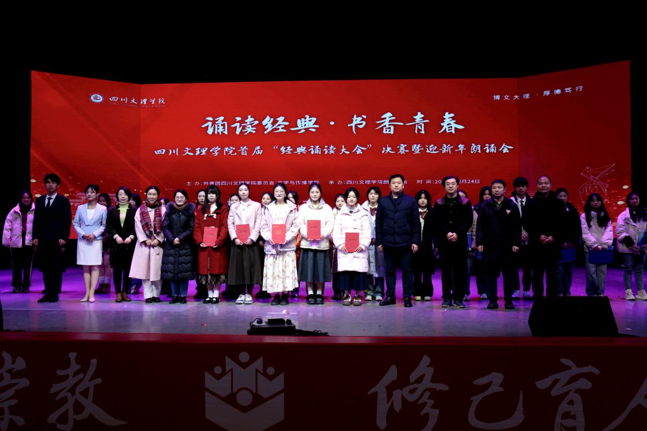 诵读经典,书香青春。为给广大诵读爱好者提供展示的舞台,由共青团ac米兰官网中文网站委员会和文学与传播学院主办,朗读协会承办的ac米兰官网中文网站首届经典诵读大会总决赛暨迎新年朗诵会于12月24日晚在音乐厅成功举办。文学与传播学院党委书记冉林,副院长成立,校团委社会实践与社团管理中心主任张艺川,教师代表李鑫、陈桃、周于婉、胡雅宁、王余鹃等参加活动。