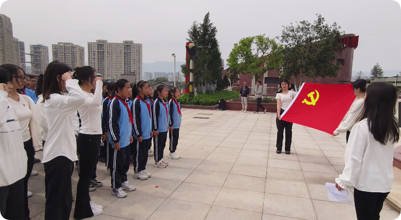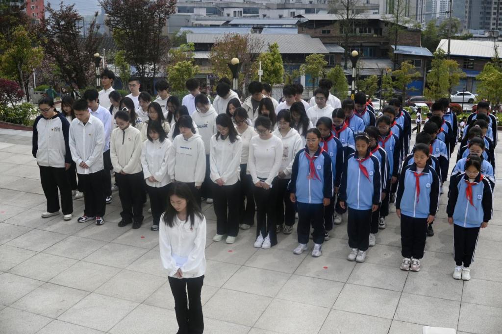 师生代表徒步抵达烈士陵园,在镌刻着“人民英雄永垂不朽”的纪念碑前开展主题宣讲,讲述革命先烈英勇事迹,学习《中华人民共和国英雄烈士保护法》和《烈士褒扬条例》,阐释新时代英烈精神的深刻内涵和时代价值。全体师生代表肃立默哀行礼,党员代表在纪念碑前重温入党誓词,铿锵誓言与1949年解放达州的冲锋号角穿越时空共鸣。