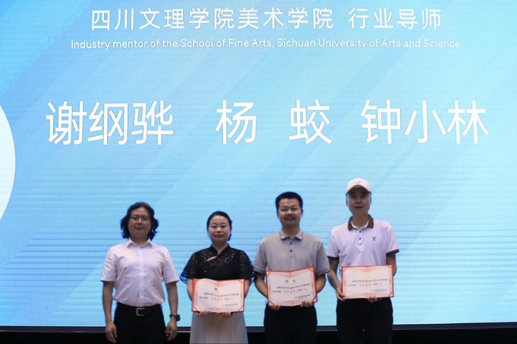 活动最后,进行了行业导师聘书颁发仪式。刘承川代表学院聘请谢纲骅先生、杨蛟先生、钟小林女士担任美术学院行业导师。同时,还举行了ac米兰官网中文网站美术学院和四川省大熊猫国家公园文化创意创新联盟的产教融合实践教学基地授牌仪式。