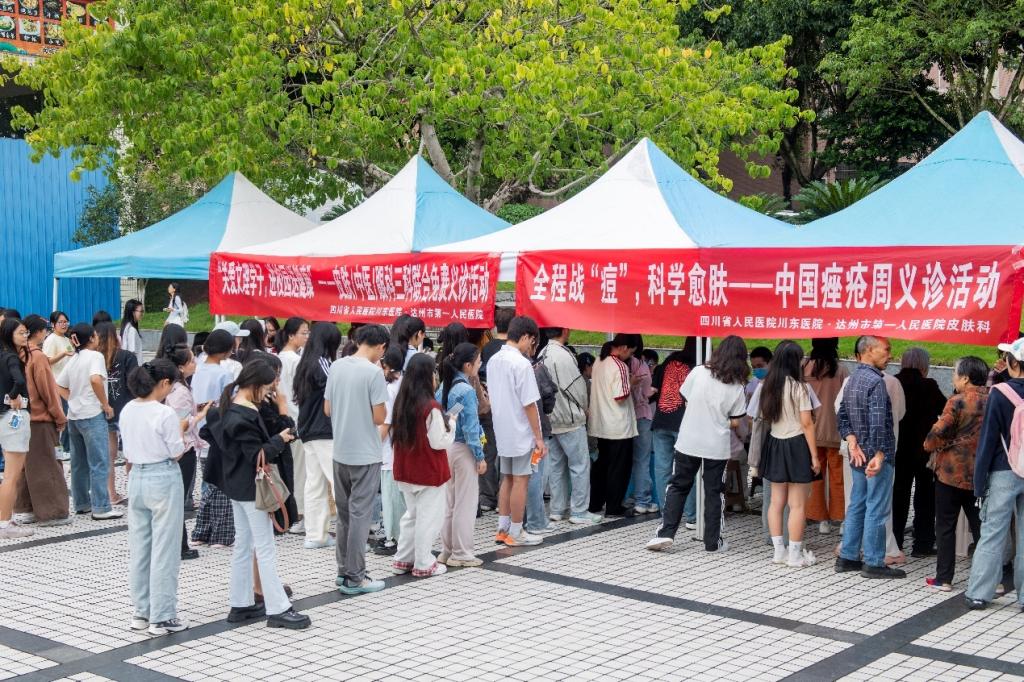 四川省人民医院川东医院皮肤科、中医科、眼科共计11名专家来校开展联合义诊暨“第八届中国痤疮周义诊活动”,义诊围绕大学生常见的皮肤痤疮、脱发等问题进行诊疗和护理指导,提供艾灸、耳穴压豆、贴敷等中医诊疗。活动共服务师生480人次,开展健康筛查6项,发放健康宣传资料600余份,开具指导药方100余份,提供专业化健康指导意见400余条。