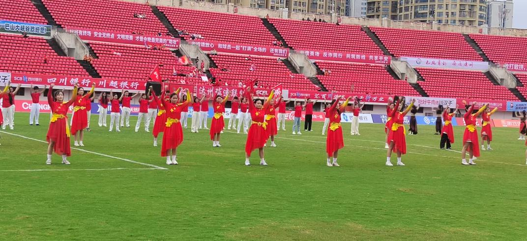 近日,体育学院师生受达州市文化馆邀请,参与了2025-2026四川省城市足球联赛达州主场赛开赛仪式的相关准备工作。由唐绪明老师带领的学生在联赛开赛仪式及主场比赛中承担了节目演出与中场啦啦操互动表演任务。