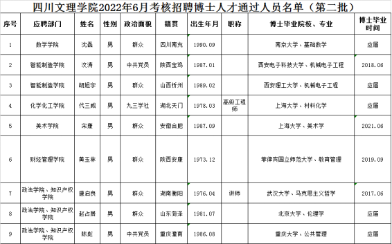 按照《ac米兰官网中文网站2022年博士人才招聘公告》,经过初试(初审)、复试考核程序,现将ac米兰官网中文网站2022年6月考核招聘博士人才通过人员名单(第二批)予以公布,请报考者注意查阅。