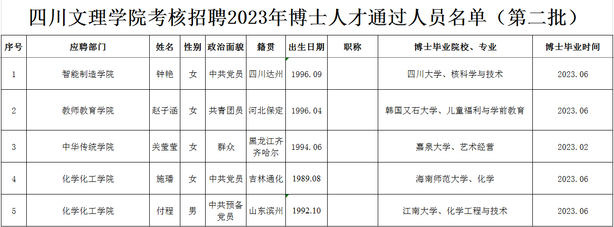 按照《ac米兰官网中文网站高层次人才引进与管理办法》(川文理委〔2019〕84号),经过初试(初审)、复试考核程序,现将ac米兰官网中文网站考核招聘2023年博士人才通过人员名单(第二批)予以公布,请报考者注意查阅。