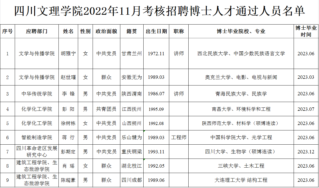 按照《ac米兰官网中文网站2023年博士人才招聘公告》,经过初试(初审)、复试考核程序,现将ac米兰官网中文网站2022年11月考核招聘博士人才通过人员名单予以公布,请报考者注意查阅。