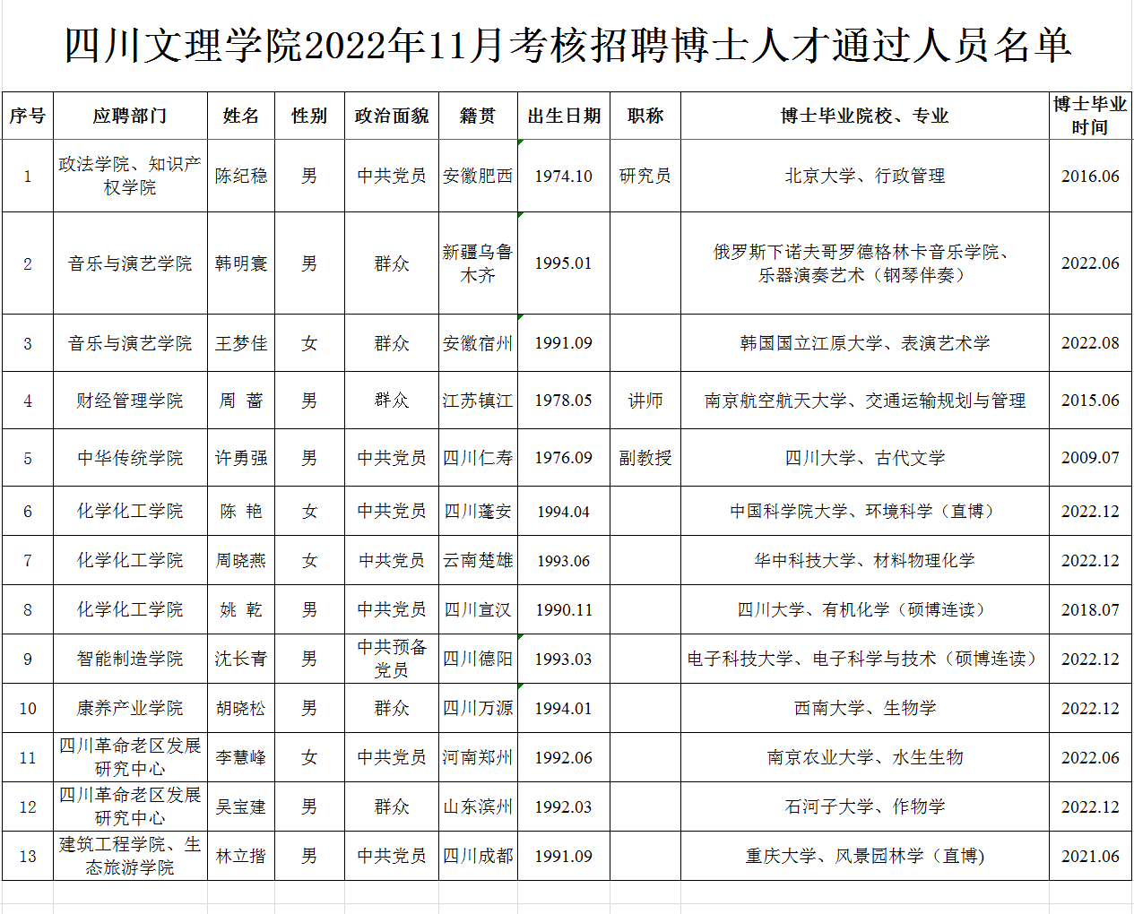 按照《ac米兰官网中文网站2022年博士人才招聘公告》,经过初试(初审)、复试考核程序,现将ac米兰官网中文网站2022年11月考核招聘博士人才通过人员名单予以公布,请报考者注意查阅。