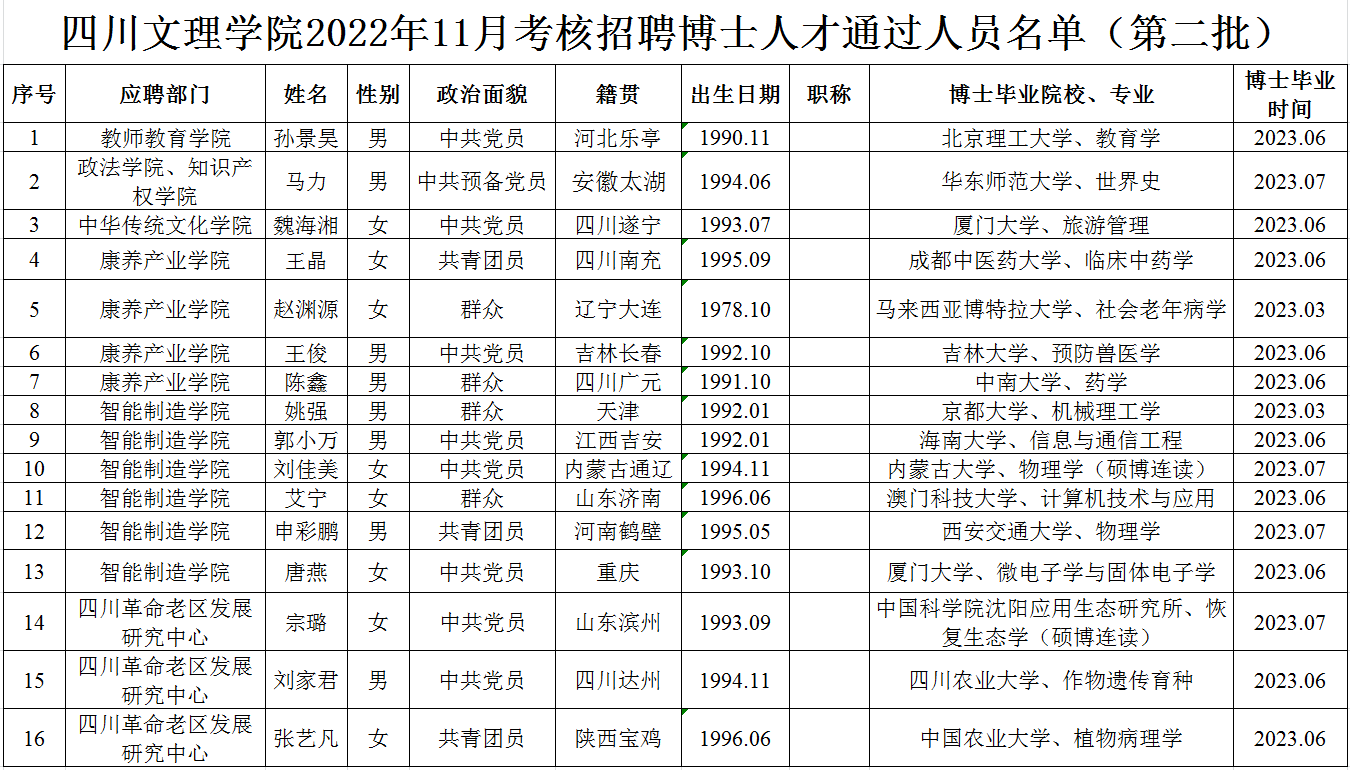 按照《ac米兰官网中文网站2023年博士人才招聘公告》,经过初试(初审)、复试考核程序,现将ac米兰官网中文网站2022年11月考核招聘博士人才通过人员名单(第二批)予以公布,请报考者注意查阅。