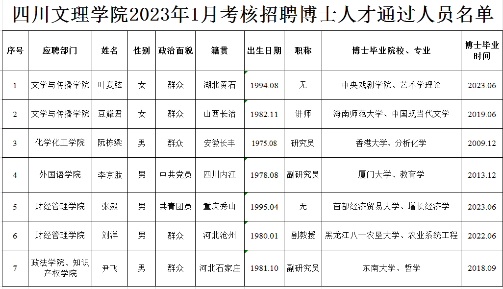 按照《ac米兰官网中文网站2023年博士人才招聘公告》,经过初试(初审)、复试考核程序,现将ac米兰官网中文网站2023年1月考核招聘博士人才通过人员名单予以公布,请报考者注意查阅。