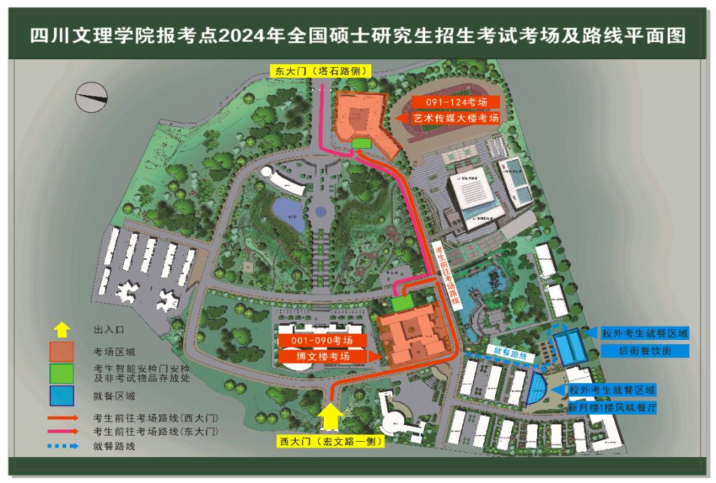 2.我报考点还提供有博文楼126教室(从音乐大楼对面进入)、艺术传媒大楼多功能厅、体育馆内馆供考生室内休息。