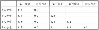 (三)所有合作成果均由负责人或第一作者在系统登记,并录入合作成员贡献率,可参考以下比例: