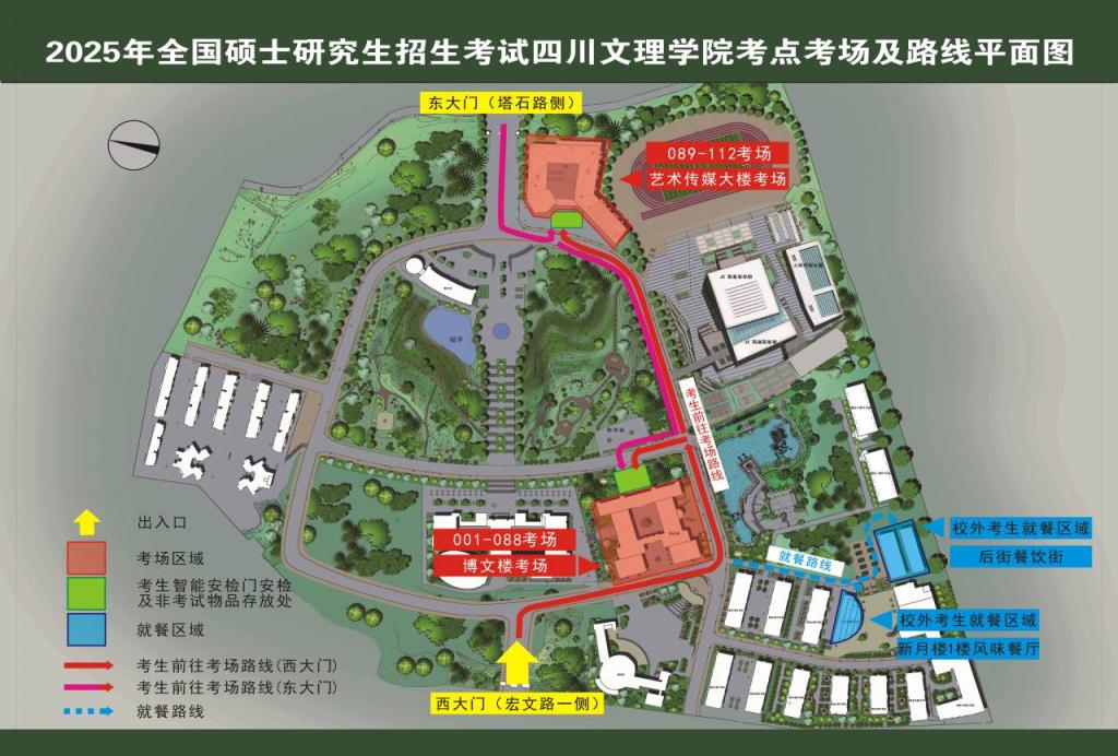 (1)考生入场安检前,应将考试无关物品存放在手机放置区域。博文楼设置在博文楼正门广场,艺术传媒大楼设置在多功能厅(校园影院)。