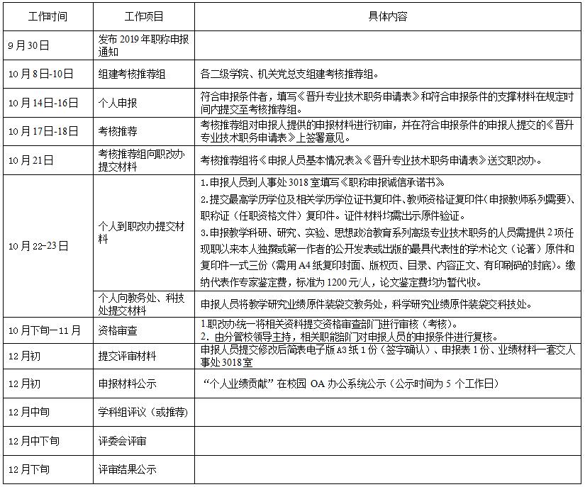 4.学校资格审查时,论著、成果类统计、审核时间截止11月30日。申报人员的论著、成果类原件原则上在个人申报时间段内提交,如已收到用稿通知并确保能在11月30日之内收到原件并完成审核可补充论著、成果。在个人申报阶段提交的《晋升专业技术职务申请表》上可做注明。